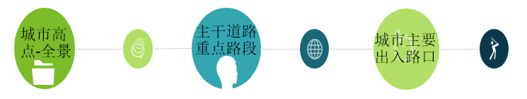 在城市路口高點部署全景攝像機,其中主要路段進行重點區域部署,在城市的主要出入口設置卡口。