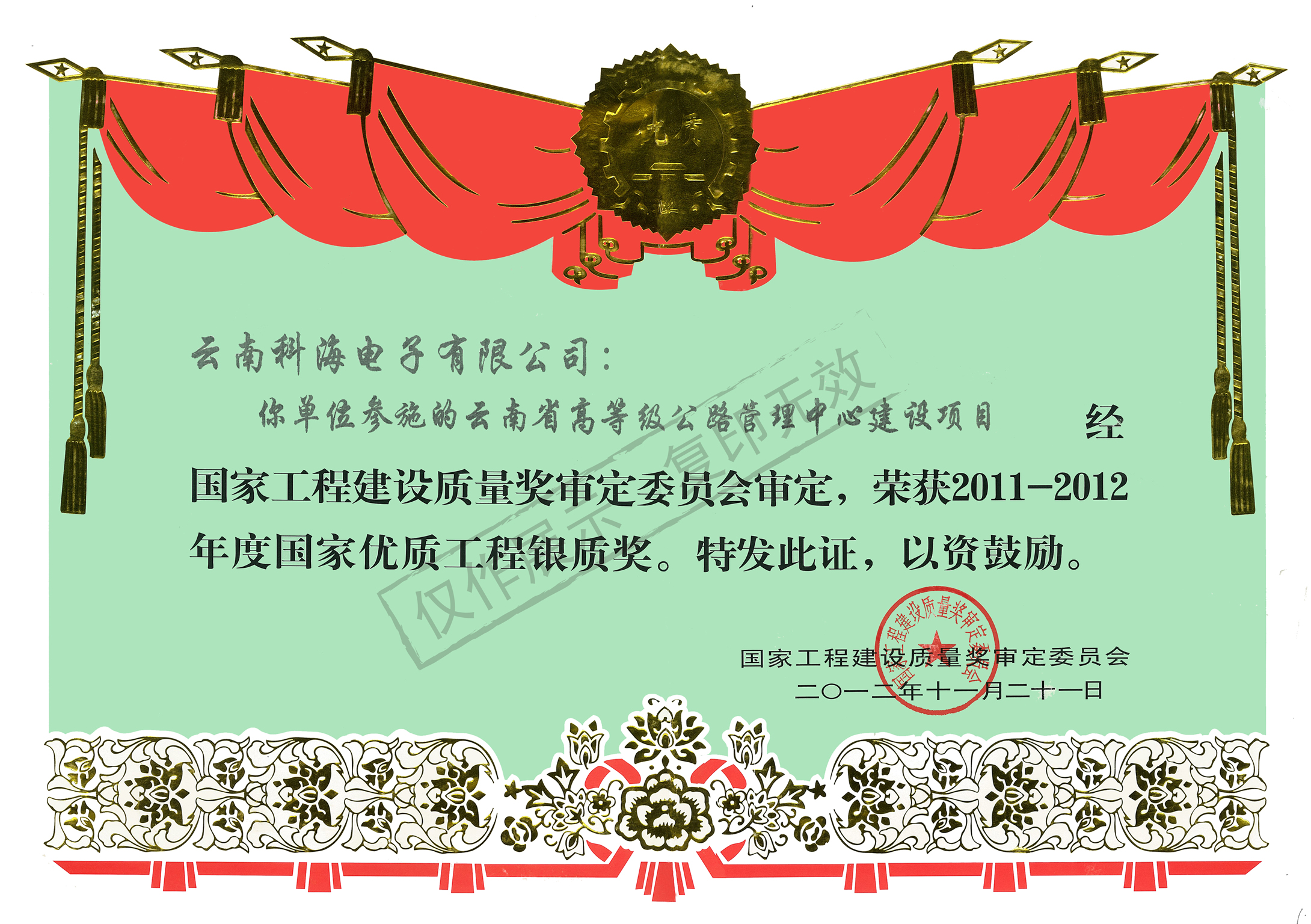 高等級高速公路管理中心國家優(yōu)質(zhì)工程銀獎